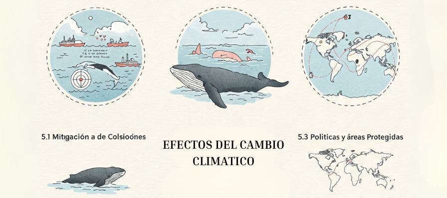 - El Tratado de Alta Mar de la ONU (2023) incluye corredores migratorios para ballenas, aunque su implementación sigue siendo un desafío (Maxwell et al., 2024).